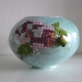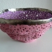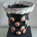 Een handgevormde schaal met een diameter van 37 cm. De schaal is afgewerkt met oxides, engobes en zilverbrons glazuur, in verschillende lagen aangebracht.