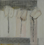 2008Vier doekjes van 40 x 40 cm (3D) zijn met elkaar verbonden tot een geheel. Het doek is uitgevoerd in gemengde techniek (acryl, papier en lint).